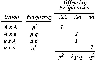 To calculate offspring frequencies, we use a mating table.