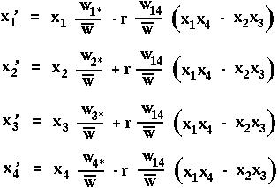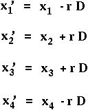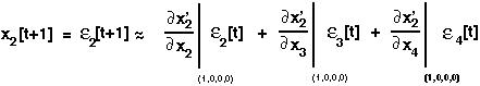 Repeating this for x'3 and x'4, leads to three linear equations in three variables (the perturbations), which we can write in matrix form: