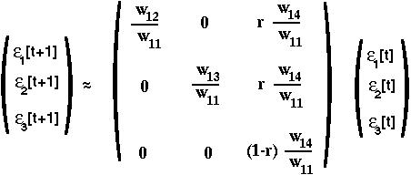 This is the local stability matrix for the two-locus selection model near the equilibrium with one chromosome fixed.