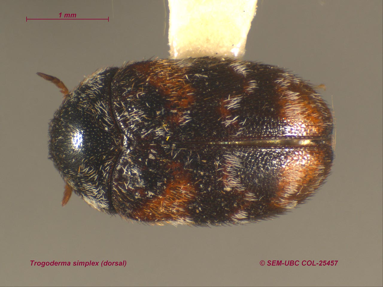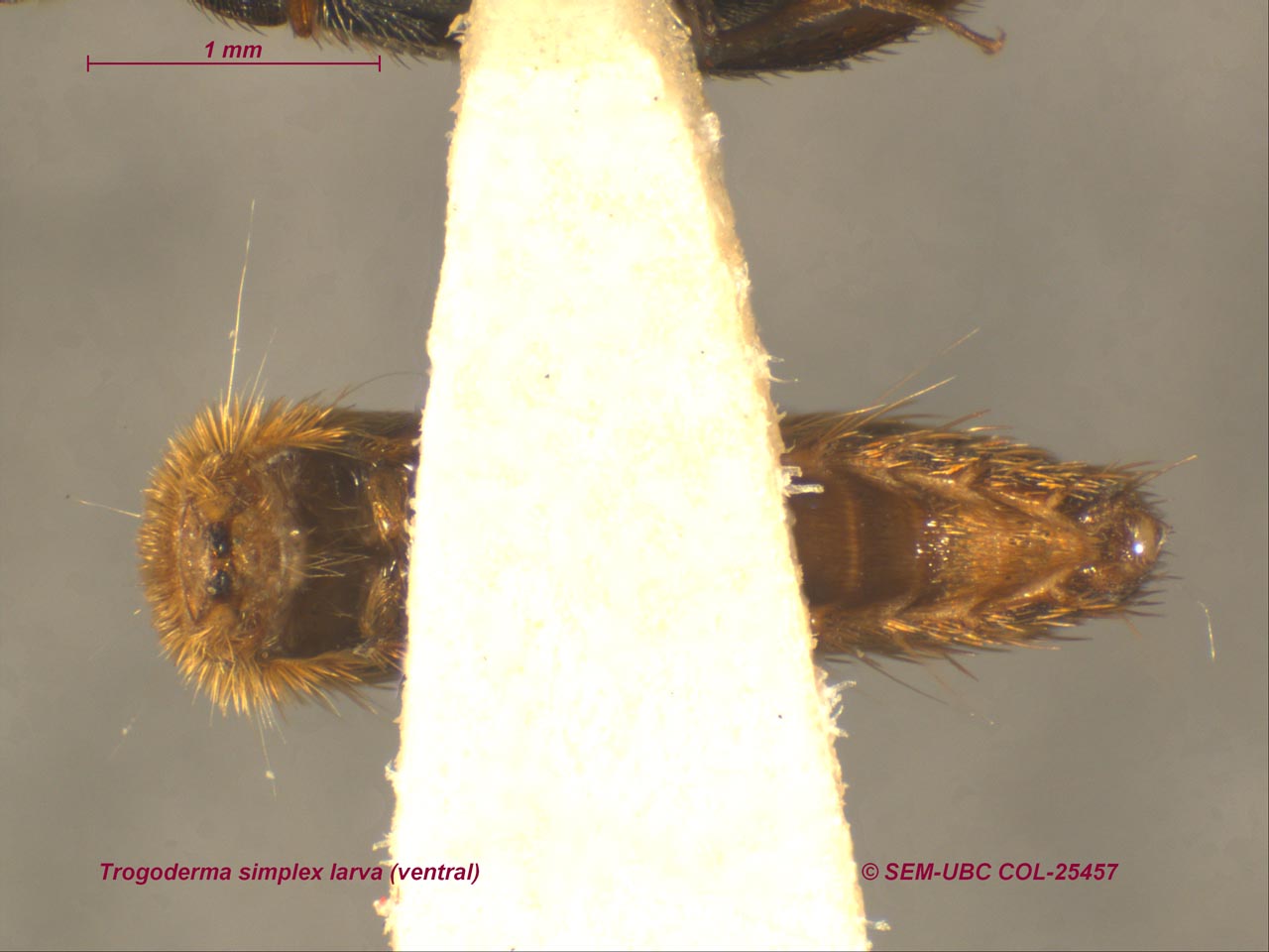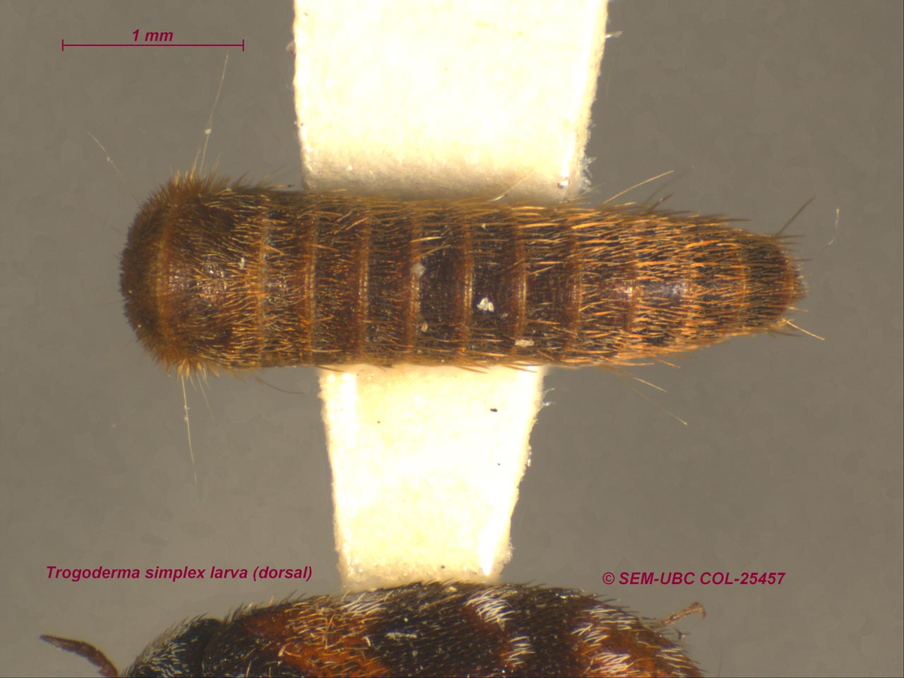 Anthrenus lepidus larval case Anthrenus scrophulariae larval case Attagenus schaefferi hypar Attagenus unicolor unicolor Attagenus unicolor unicolor larva Dermestes maculatus larva Dermestes marmoratus larva Dermestes marmoratus larval case Thylodrias contractus female Thylodrias contractus larval case Thylodrias contractus male Trogoderma boron Paratype Trogoderma sternale sternale