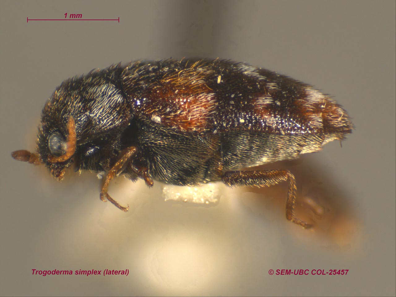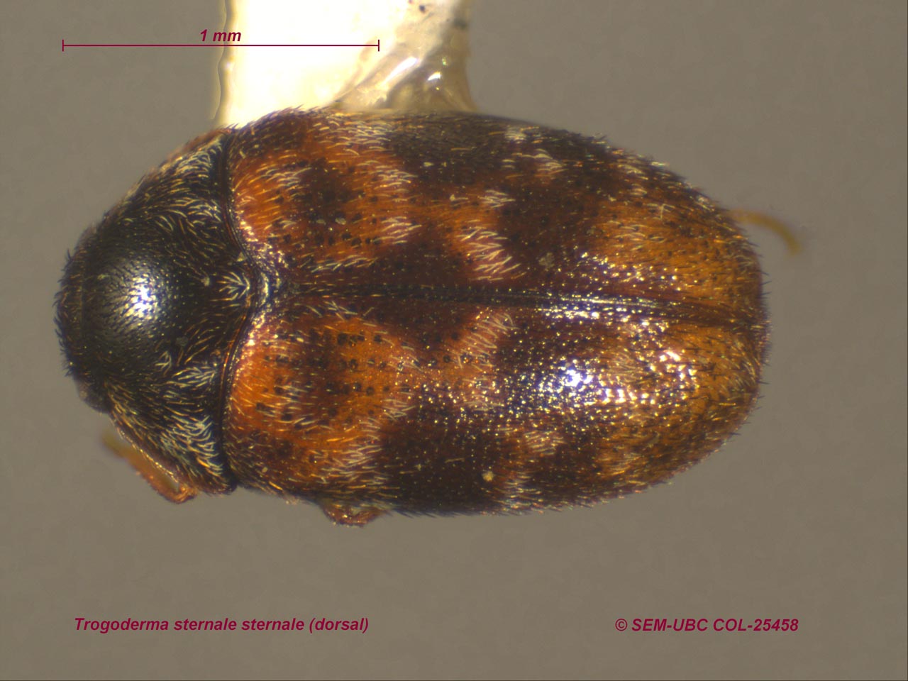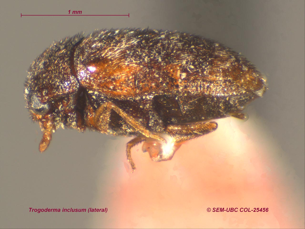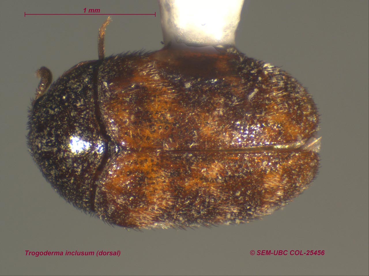 Anthrenus lepidus larval case Anthrenus scrophulariae larval case Attagenus schaefferi hypar Attagenus unicolor unicolor Attagenus unicolor unicolor larva Dermestes maculatus larva Dermestes marmoratus larva Dermestes marmoratus larval case Thylodrias contractus female Thylodrias contractus larval case Thylodrias contractus male Trogoderma boron Paratype Trogoderma sternale sternale