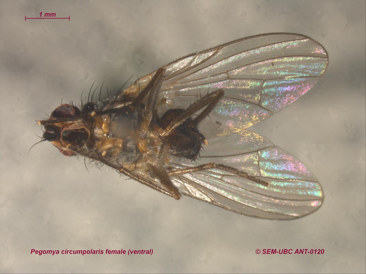 Anthomyia acuticerca Paratype Anthomyia canningsi Paratype Anthomyia cunaicerca Paratype Anthomyia liturata subsection female Botanophila lactucaeformis Botanophila rectangularis Botanophila spiniventris female Botanophila spiniventris male Delia beringiana Paratype Delia nigripennis Paratype Delia pallipennis infrasection female Delia pseudechinata Paratype Delia pseudorainieri Paratype Delia schistophalla Paratype Delia setiventris infrasection female Eutrichota humeralis form A Eutrichota humeralis form B Pegohylemyia abitibiensis Pegohylemyia betarum female Pegohylemyia fugax female Pegomya circumpolaris female Pegomya tabida superspecies female Pegoplata nigroscutellata Strobilomyia anthracina superspecies female Strobilomyia neanthracina