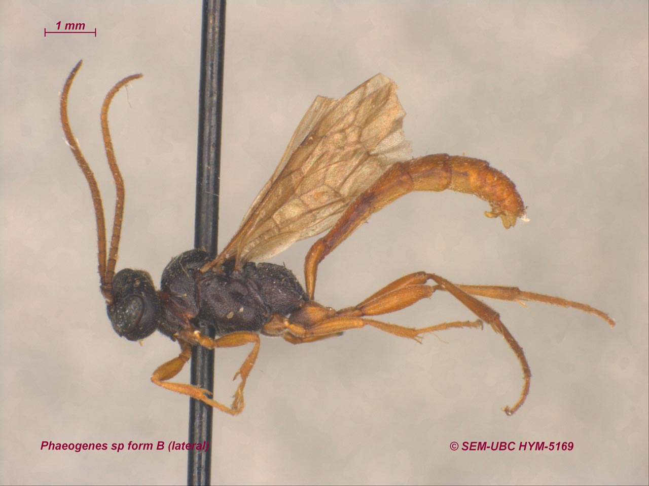 Conocalama occidentalis female Conocalama occidentalis male Cratichneumon ashmeadi male Cratichneumon unifasciatorius female Ctenichneumon excultus female Ctenichneumon excultus male Diadromus subtilicornis female Diadromus subtilicornis male Ichneumon sp form A female Ichneumon sp form B female Ichneumon sp form E female Melanichneumon sp form B male Obtusodonta obscuricolor female Patrocloides montanus female Protichneumon effigies female Protichneumon effigies male Protichneumon grandis female Protichneumon grandis male Spilichneumon nubivagus male Spilichneumon superbus female Stenichneumon pallidipennis female Stenichneumon pallidipennis male Stenichneumon salvus female Tricholabus foxleei form A Tricholabus foxleei form B