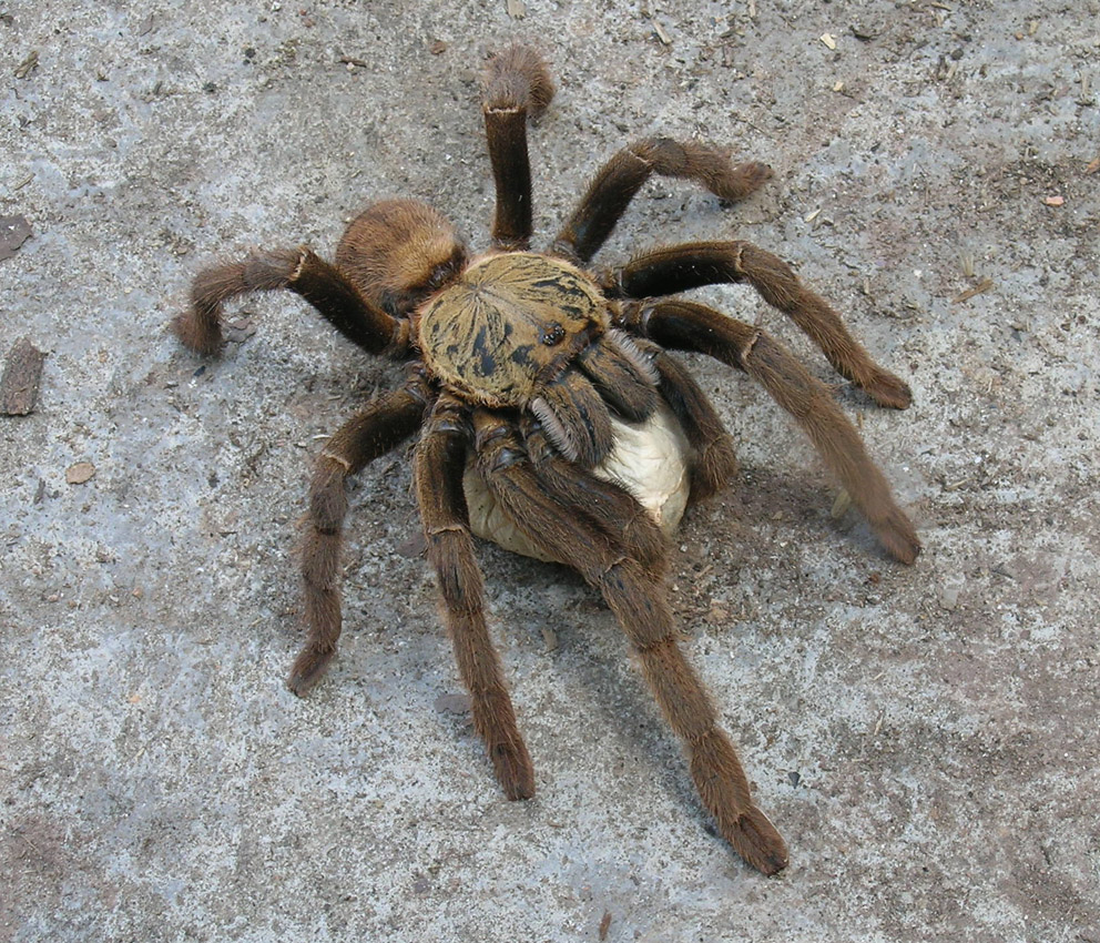 A female tarantula carrying her eggsac. Guangxi, 2004. |