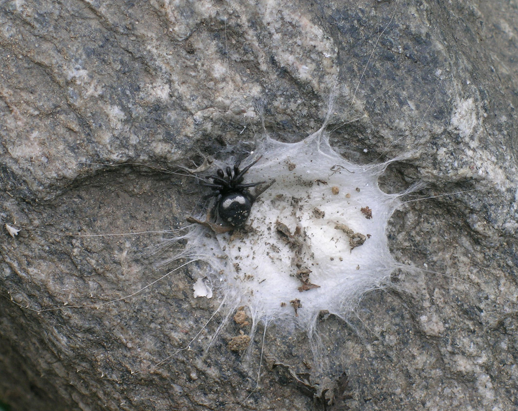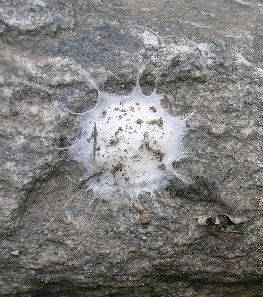 The tent-like web of Uroctea (Family Oecobiidae). Henan, 2004. |