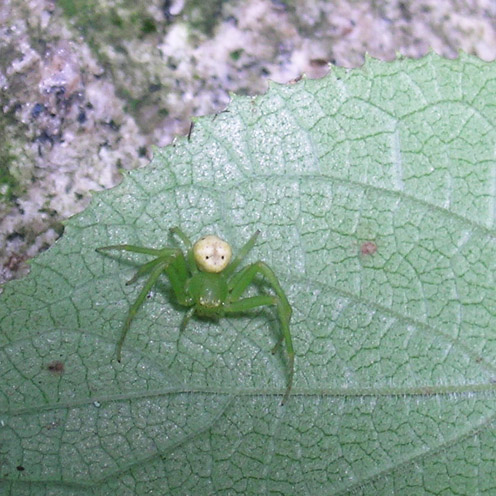 A green female Tibellus (Family Philodromidae). Hainan, 2003. |
