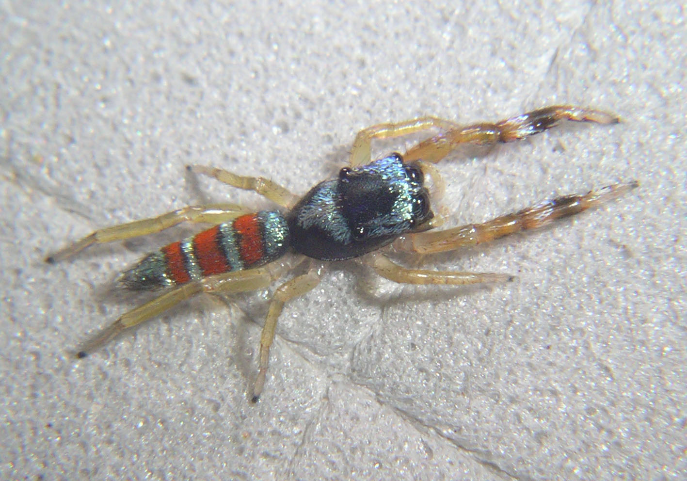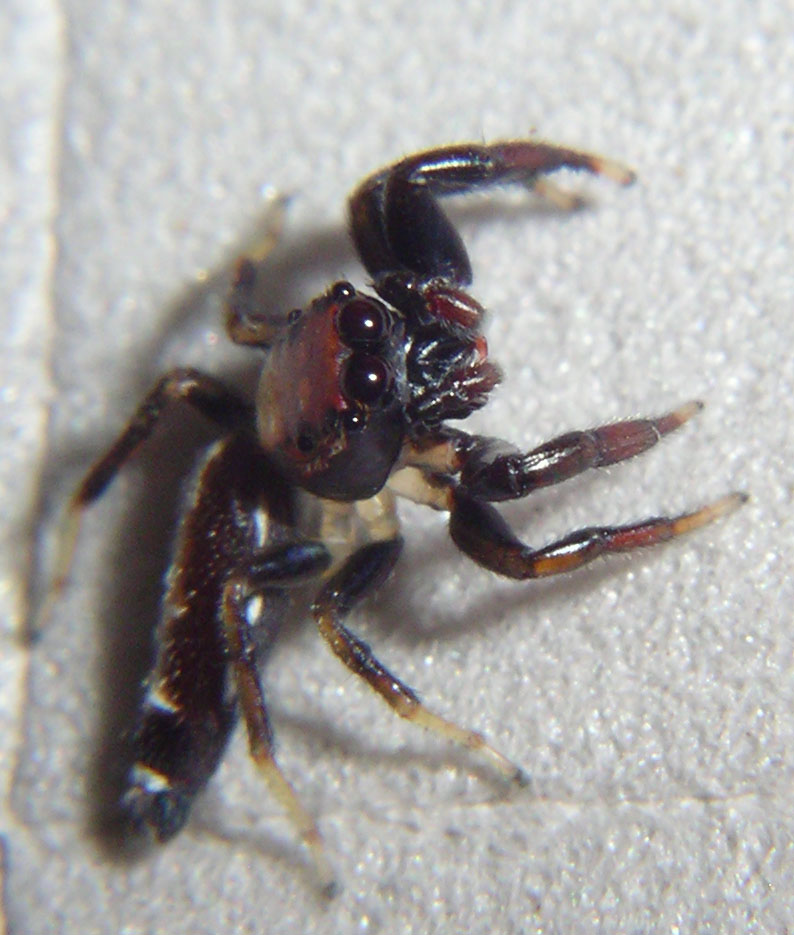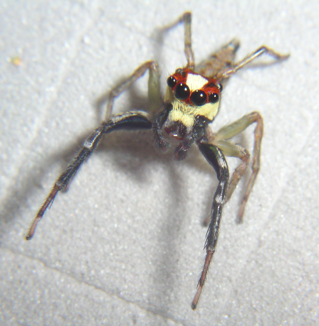 A spitting spider guarding carrying her eggsac. Hainan, 2003. |