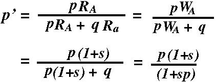 Since the allele frequency of A in the parents is x+y/2=p (by definition), and since the allele frequency of A in the offspring equals x'+y'/2 = p2 + 2 p q/2 = p (p+q) = p , the allele frequencies again remain constant.