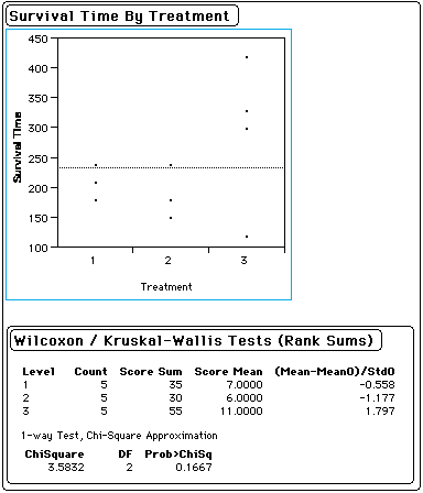 Assume that the variances of the three groups are not equal. Are the survivorship times equal in the three groups?
